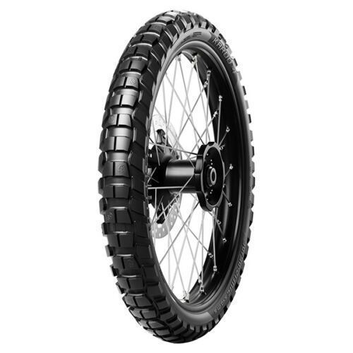The front tyre of KAROO 4 is a single compound. The radial sizes feature a carbon black compound with extreme resistance to abrasion, a direct evolution of what was used for KAROO 3. For cross-ply sizes, the engineers of the METZELER brand developed a new compound with the aim of reaching a wider operating range and greater adhesion to surfaces.